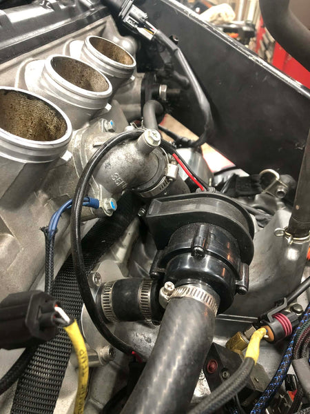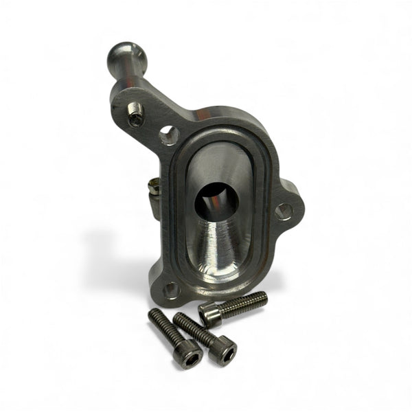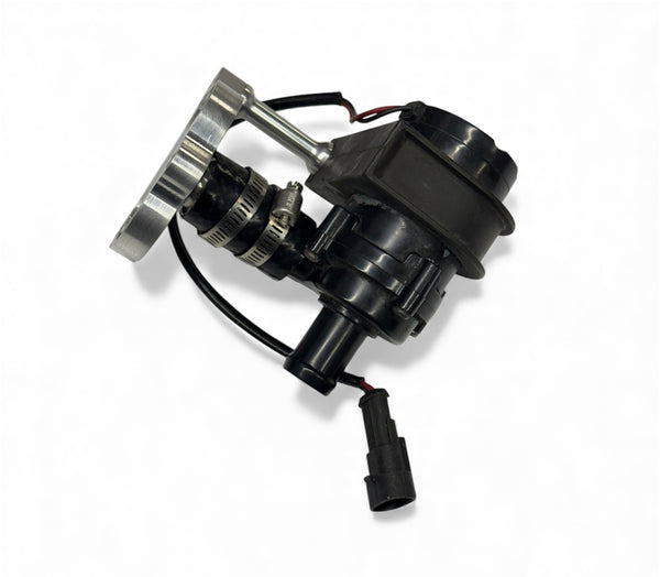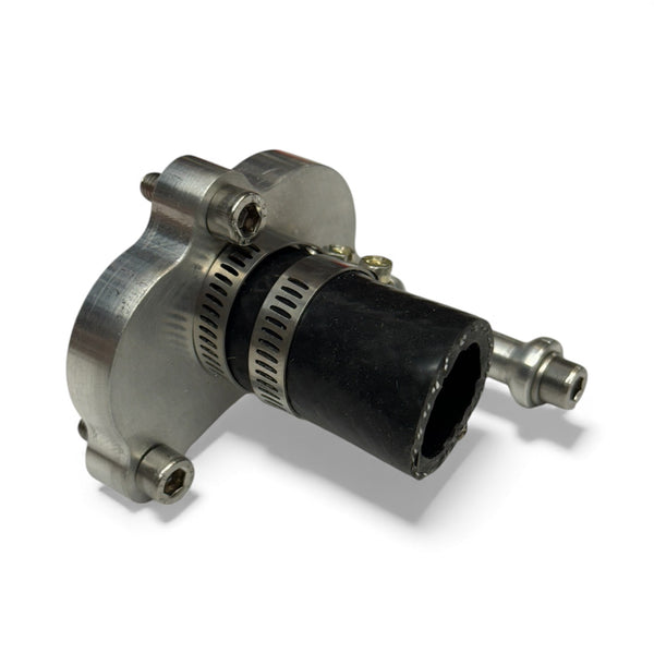 Billet aluminum water pump adapter plate. Bolts to the back of the block. Comes as pictured with hardware, hose clamps and a piece of hose. This is designed to be used with the Davies Craig EBP23 Electric pump (not included). To complete the install utilizing the factory equipment you’ll need the pump, 3/4”-1” adapter and a piece of 3/4” hose.