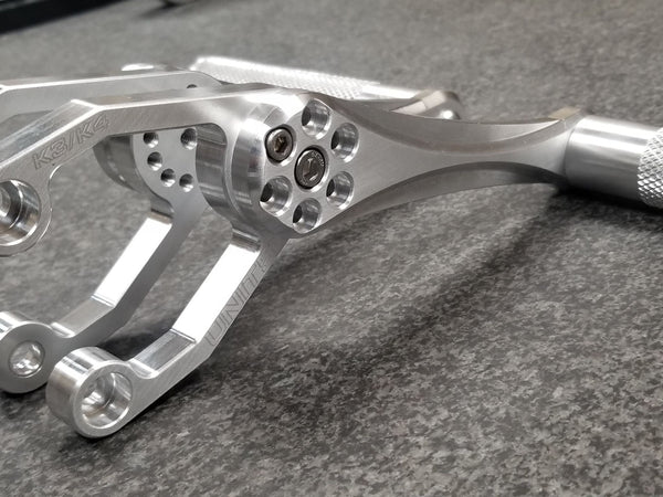 Grudge style rearsets feature complete adjustability. For no rear brake. These will not work with street style exhausts only sidewinders